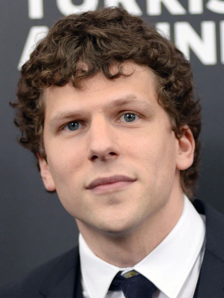 Curly haired and with a fast-talking voice, Jesse Eisenberg is a movie actor, known for his Academy Award nominated role as Mark Zuckerberg in the 2010 film The Social Network. He has also starred in the films The Squid and the Whale, Adventureland, The Education of Charlie Banks, 30 Minutes or Less, Now You See Me and Zombieland. Additionally, he played Lex Luthor in the 2016 film Batman v Superman: Dawn of Justice.
